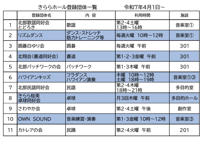 きららホールは、人々がであう交叉点です。これまでで無縁であった人たちがばったり出会う、そんな「無縁の縁」がおこるバリアフリーな場所をめざしています。 キャッチコピーは、「出会いの花咲く 学びの場」~そうだ きらら へ行こう~です。きららへ行けば誰かと出会う、そこで生まれた出会いを新しい「対話」の仕組みへと育て上げる市民の活動を支援し、また新たに提案していきます。